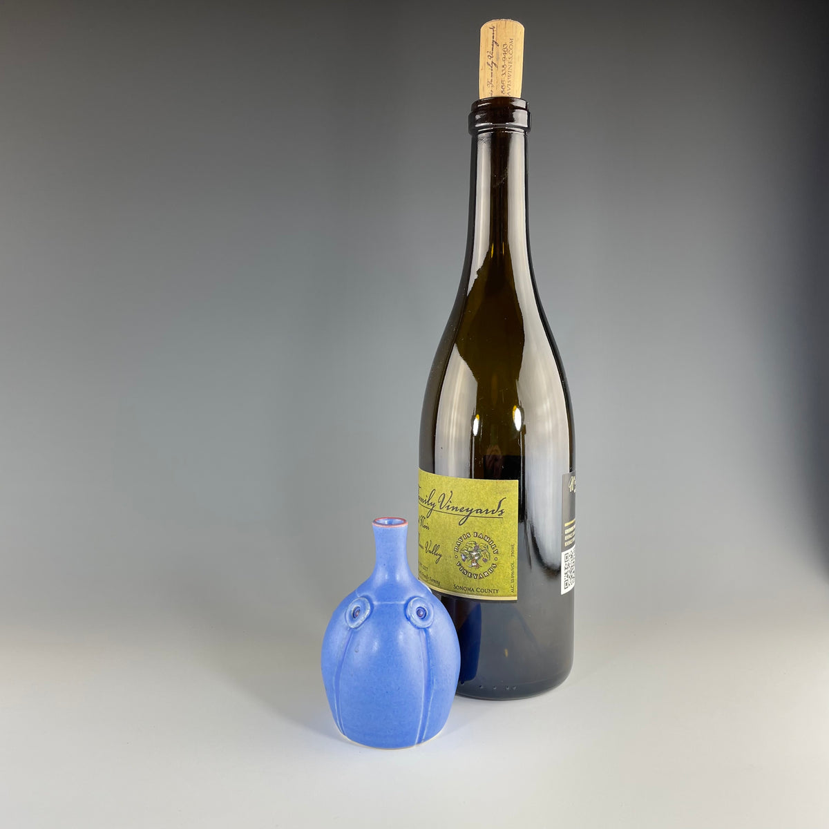 This lovely bottle has a beautiful satin glaze with cute buttons. It is approximately 4 inches tall and 2.5 inches round.