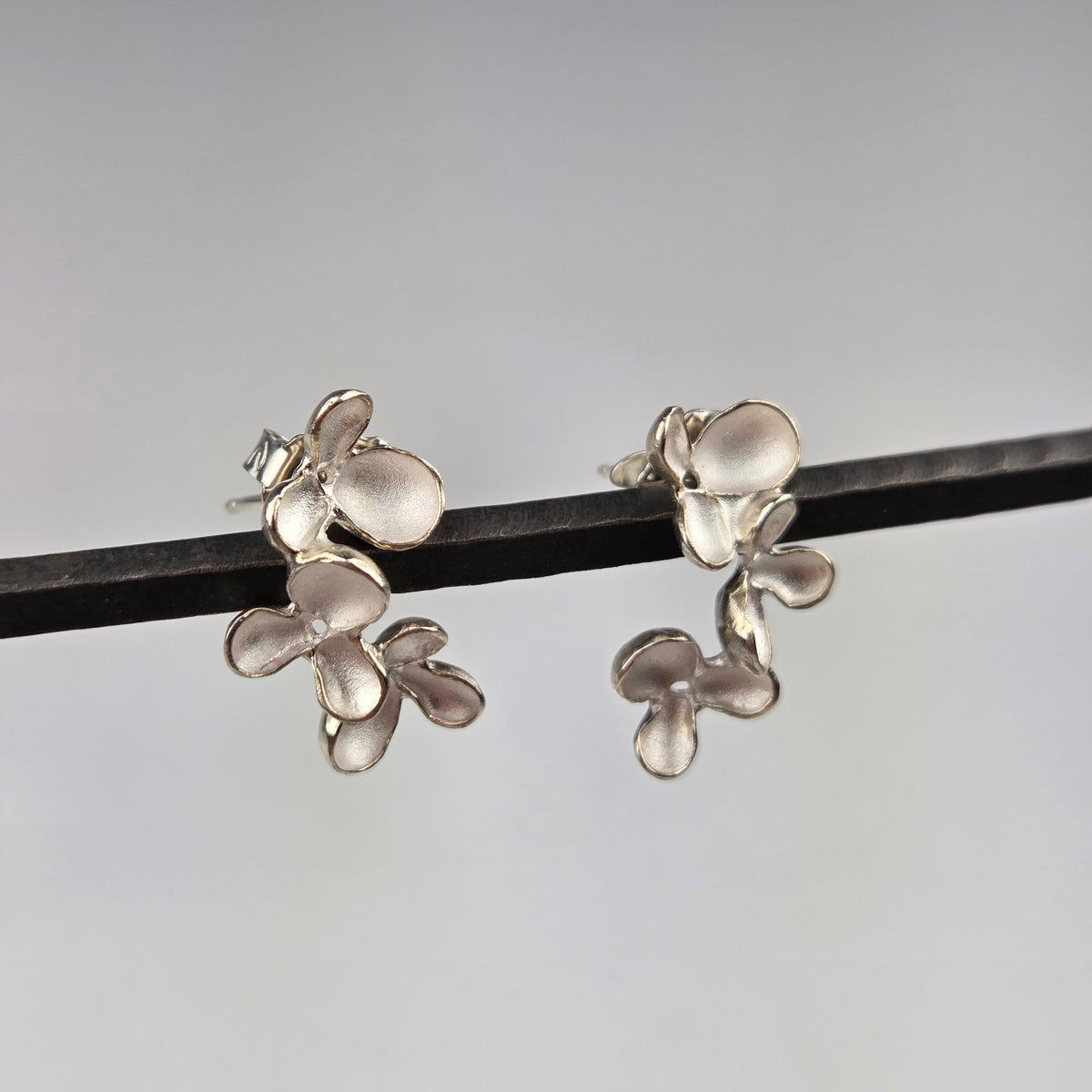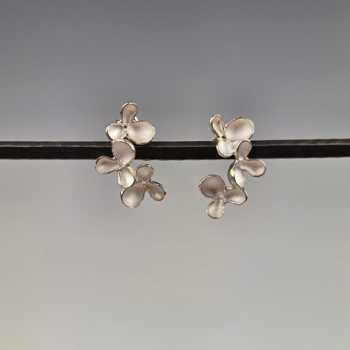 Curving trios of stylized blossoms perch on your earlobes like the first signs of spring. We love the dimensional contours of these earrings, intricate without being heavy, and sporting Sarah Richardson's signature matte silver finish.