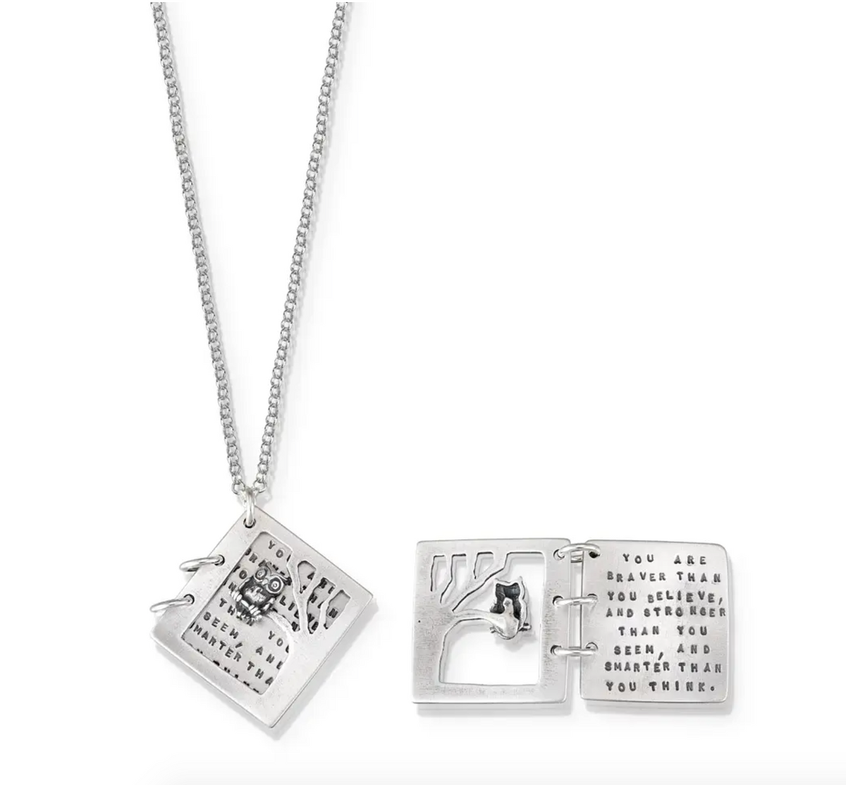 Says Kathy Bransfield about her inspiring creation: "Always teachings to be found in a story of Pooh bear! Lovely words to remind that special person that they are truly amazing on so many levels. This is where my word line all started. I was making these little tiny book necklaces with hand stamped pages back in the early 90's. It has been a mainstay ever since despite some simple design elements changing. The owl, of course, is a must. And once again... as with a lot of my designs... we have the mighty tree represented as well. A definite conversation piece!"