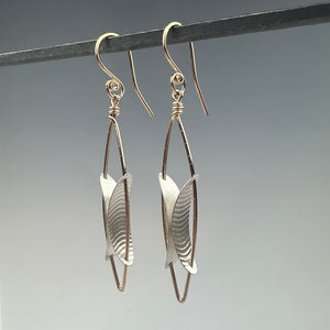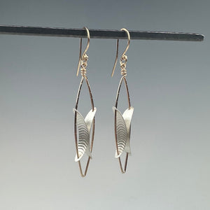 Two curved, textured wings of sterling silver seem to float inside Carolyn Zakarija's carefully composed frames. Feather-light and comfy to wear, too!