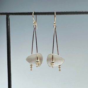 Sterling silver and 14k gold fill earrings. Approximately 3/4" across at widest and 2 1/2" tall including gold fill ear wires.