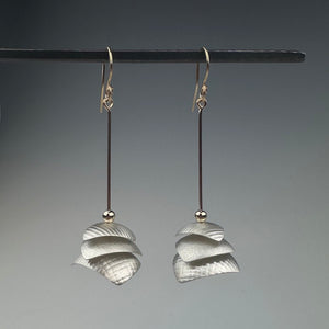 Sterling silver and 14k gold fill earrings. Just under 1" across at widest, and 2 3/4" tall including hand-sculpted ear wires.