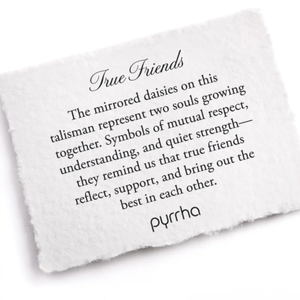 The mirrored daisies on this talisman represent two souls growing together. Symbols of mutual respect, understanding, and quiet strength—they remind us that true friends reflect, support, and bring out the best in each other.