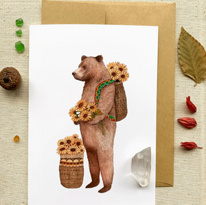 It measures 5"x7" and comes with a Kraft colored envelope. Blank inside so that it can be used for any occasion.