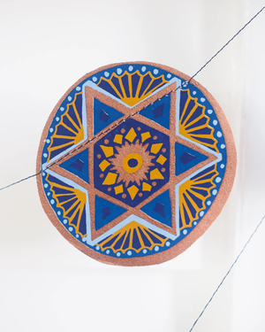 Includes 10 paper shapes, sewn along strong cotton thread. Screen printed by hand on both sides by talented artisans in Jaipur. Sustainably made from recycled materials.