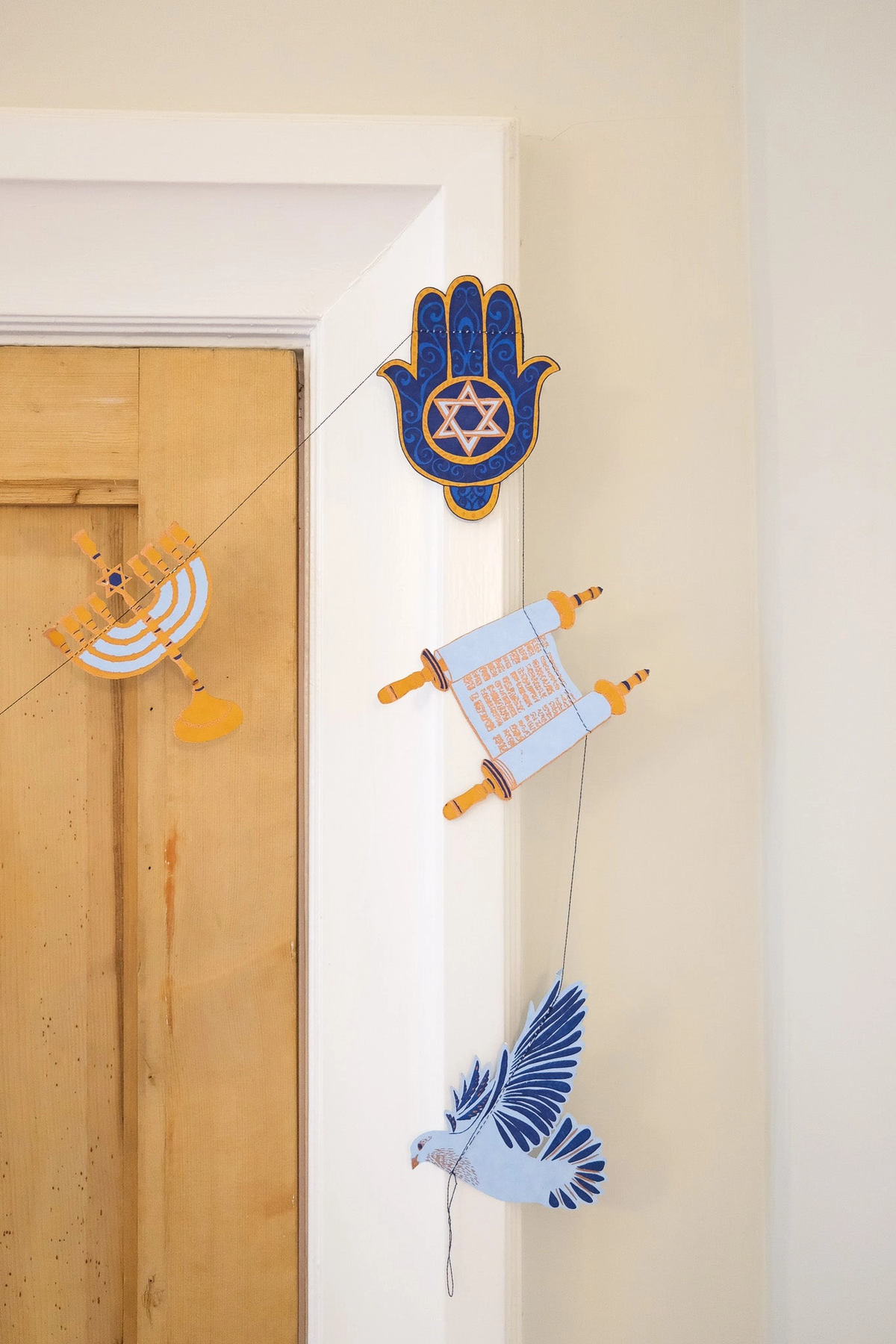Perfect for decorating for Hanukkah, this garland features ten shapes including a menora, a dreidel, a Torah and Star of David.