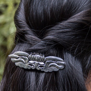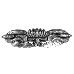 Lotus flower, cattails, and flowing water adorn this ornate barrette.