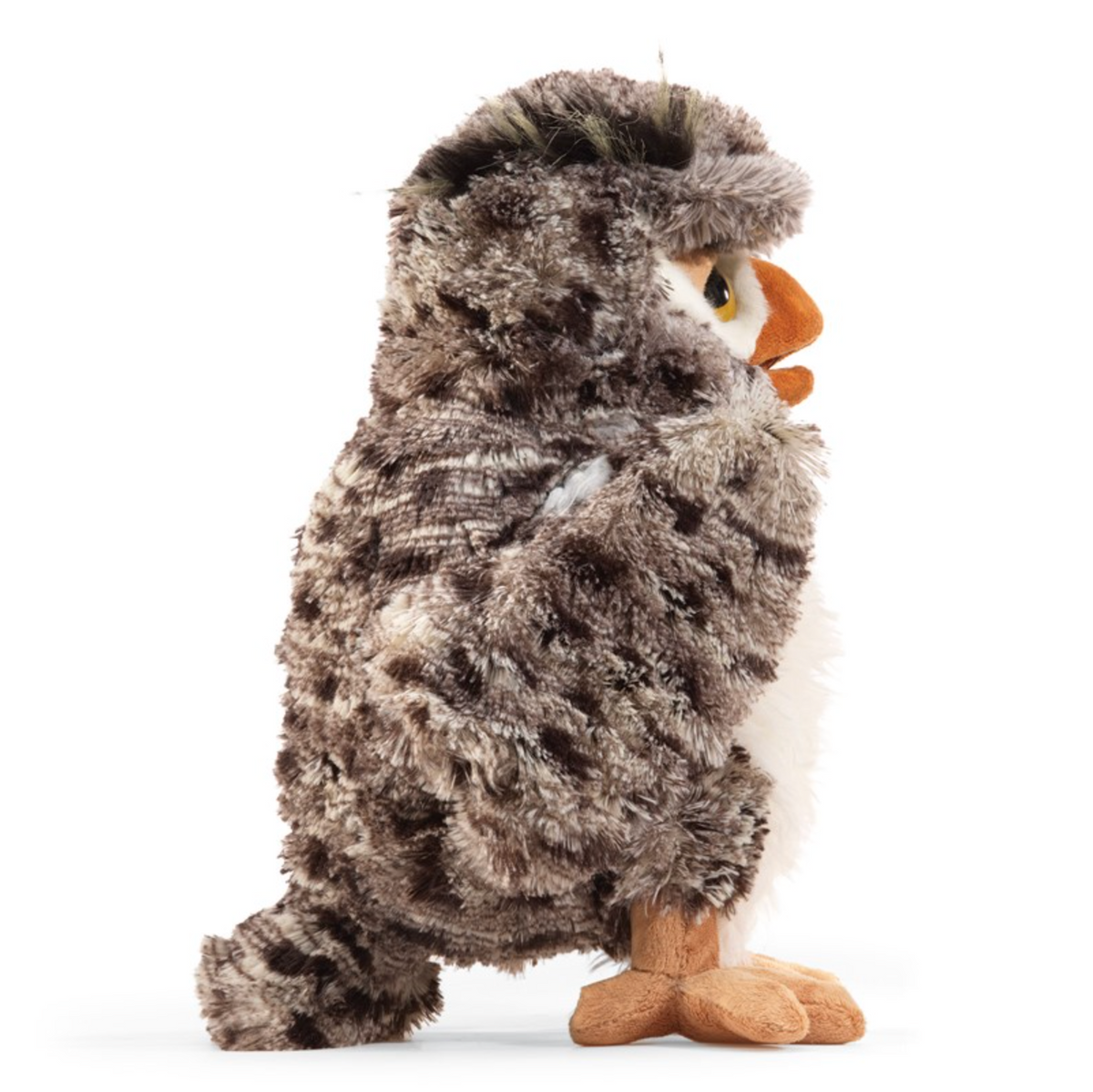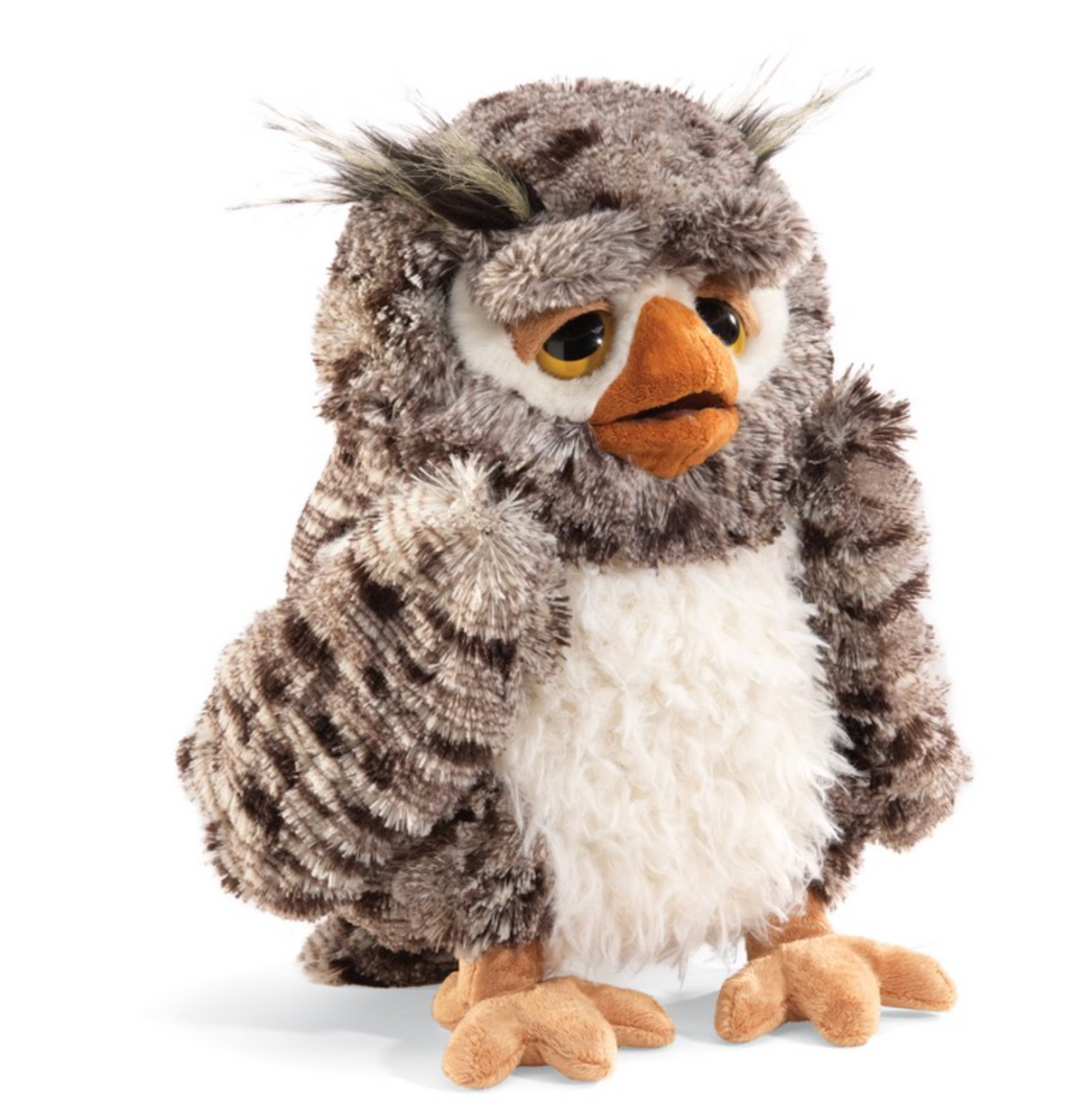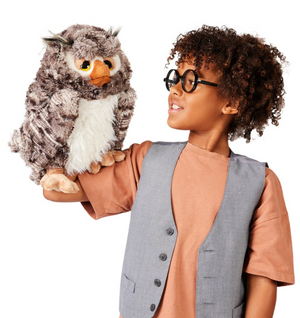 Long associated with knowledge and intelligence, the Wise Owl puppet flies in to teach us sage old lessons from across cultures. Rendered in soft poly plush with a movable beak and animated eyebrow pockets for winking, this storied character adds enchantment to playtime.