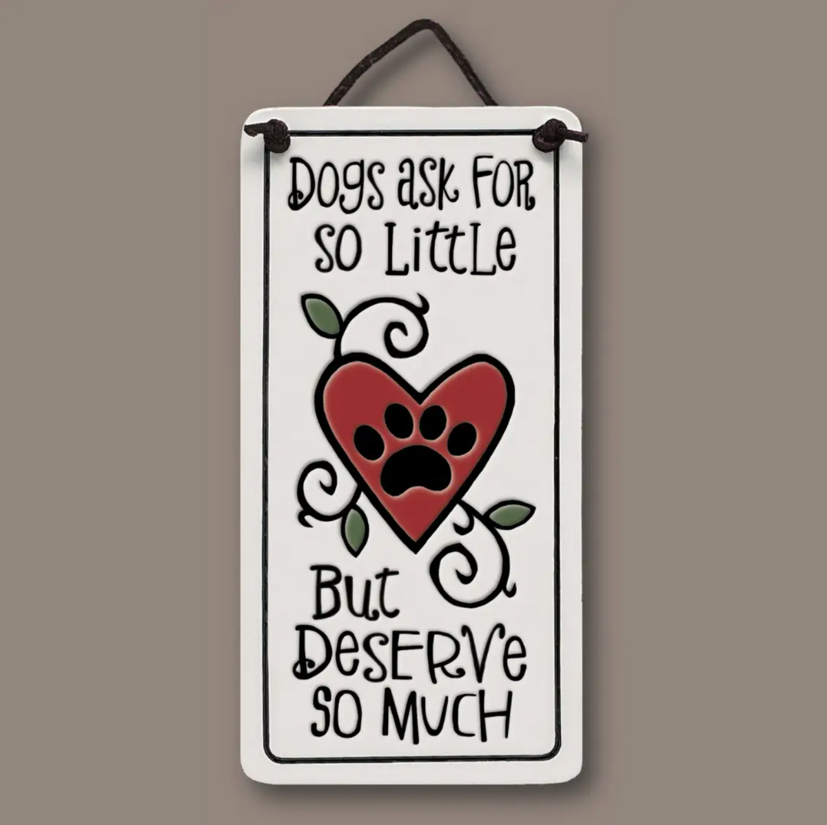 Spooner Creek Mini Charmer with quote, "Dogs ask so little, but deserve so much." Measures 2.25" X 4."