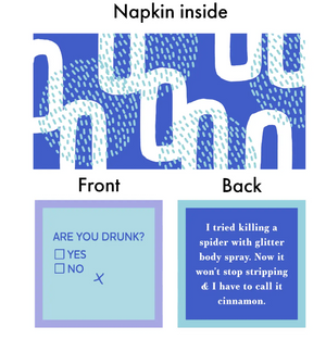 All napkins are double sided, with 2 different hilarious sentiments on each napkin for double the fun -- we are the original double-sided napkin! Customers love to flip for more fun! Napkins are 5”x5” & double sided. 20 (3 ply) per package.