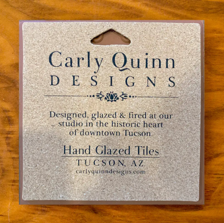 This art tile features Arizona Artist Janel Garza's work translated to ceramic tile by Carly Quinn.