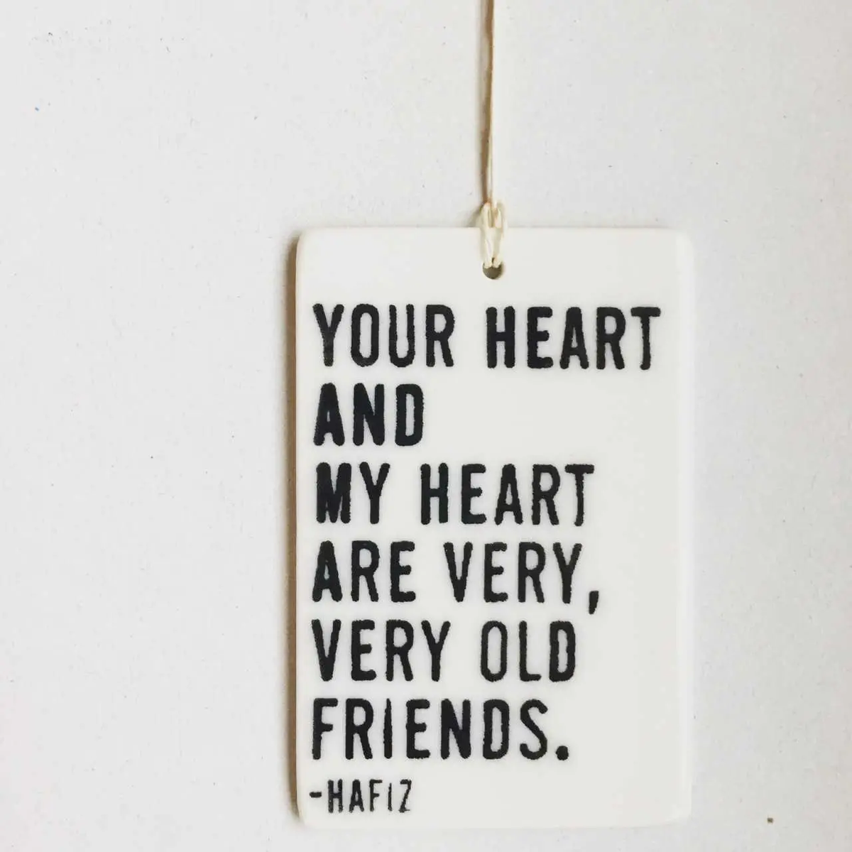 A ceramic daily reminder with screen printed words from Hafiz (Hafez), a 14th century Persian lyric poet.