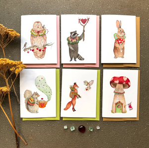 The cards come with matching envelopes in a clear little box! Each card is approximately 4.75”x3.5” (A1).
